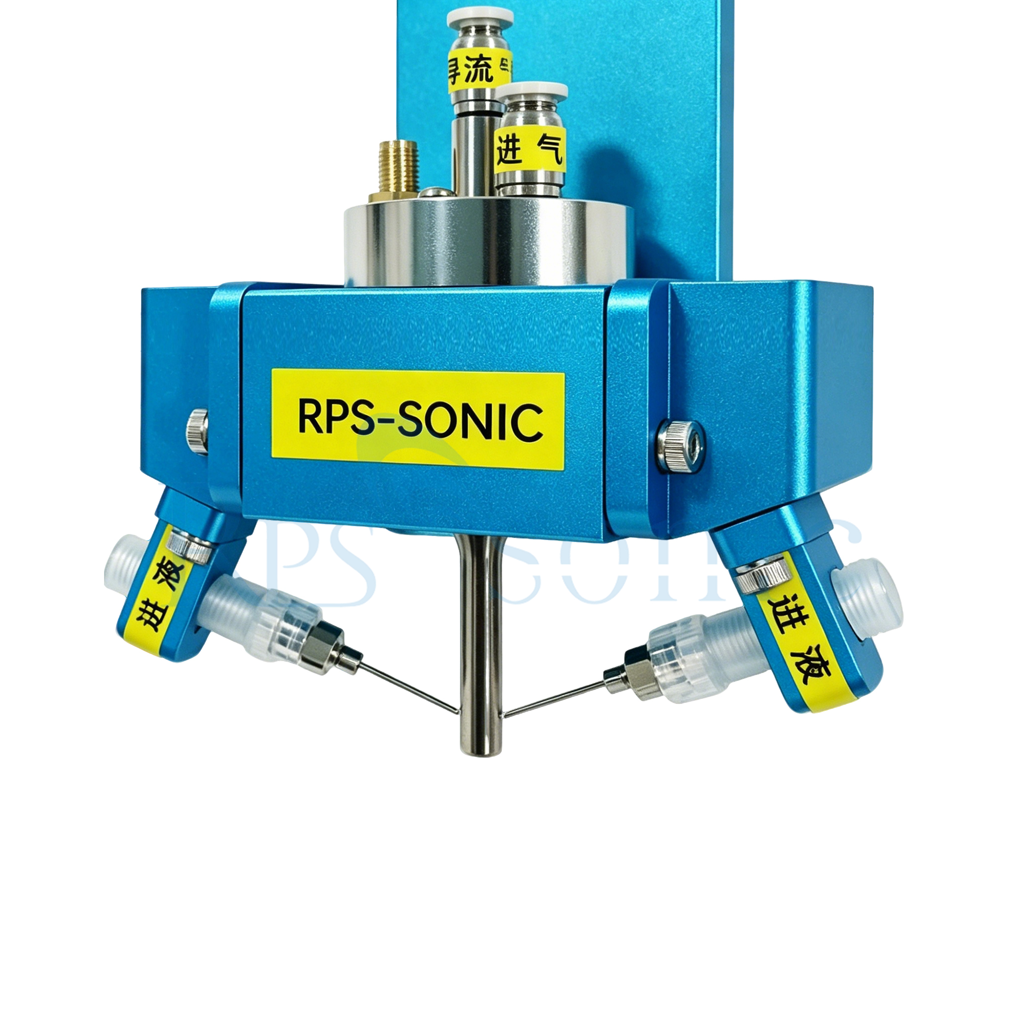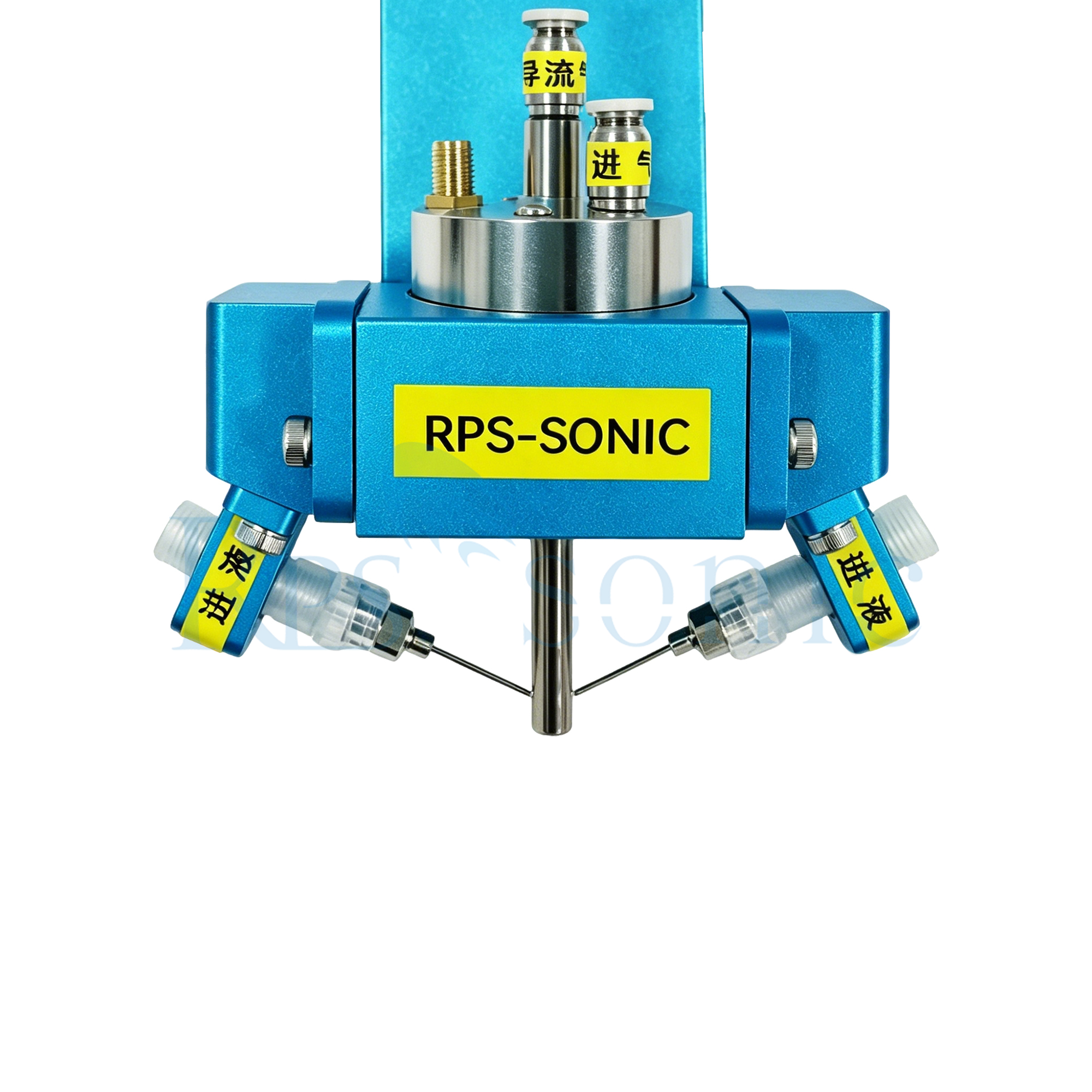 1. 超声波换能器:超声波喷嘴的核心部件是超声波换能器。它通常由一个压电元件组成,比如一个压电陶瓷盘,它可以将电能转化为机械振动。当交流电(AC)电压施加到压电元件上时,它会使其以超声波频率振动,通常在1到100兆赫兹(MHz)的范围内。